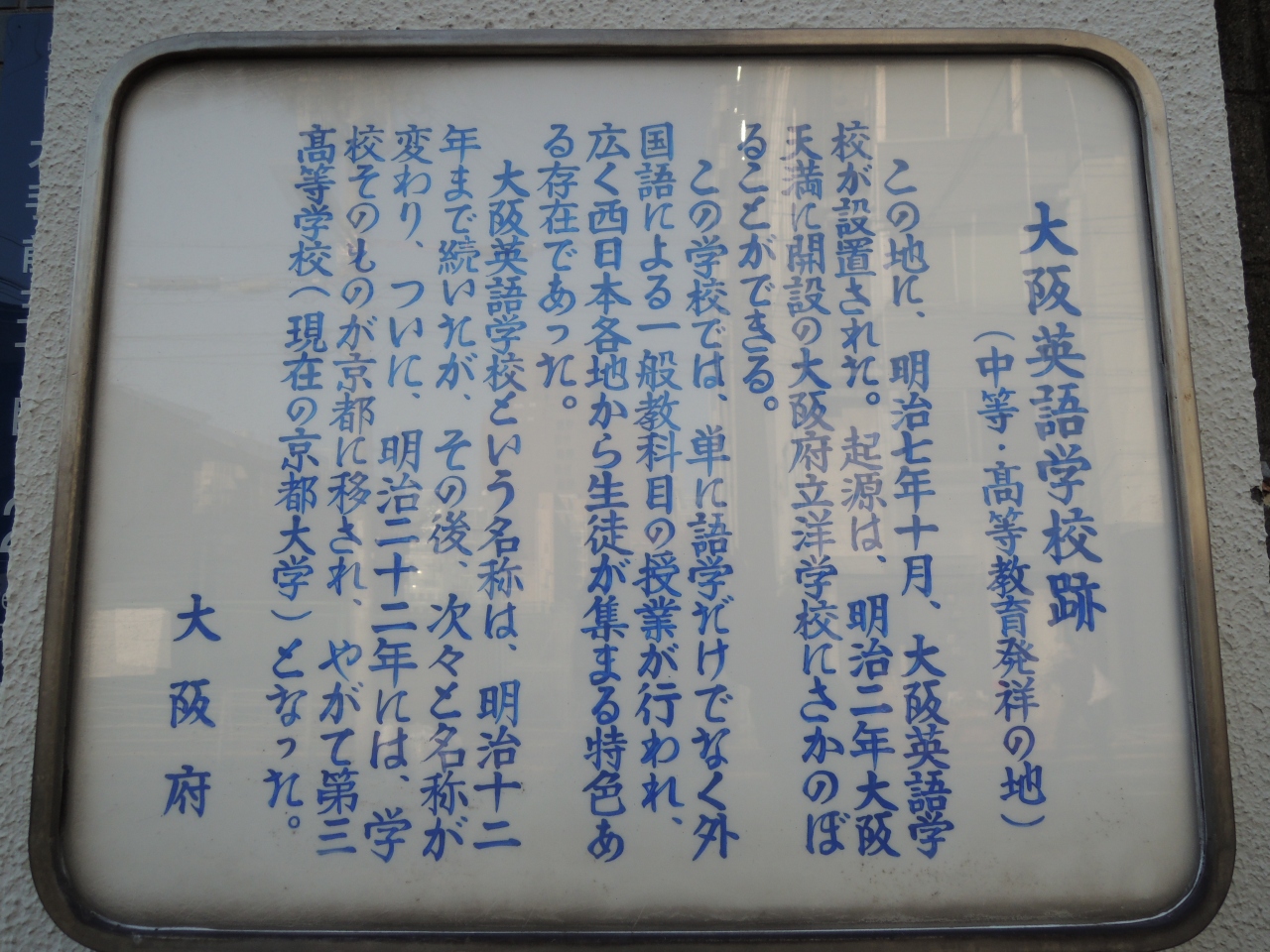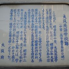 この地に 明治7年10月 大阪英語学校が設置されました。