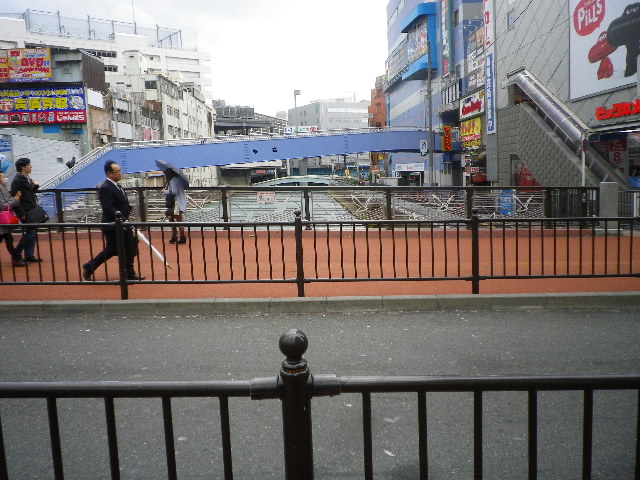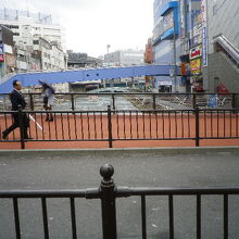 高島屋方面から来る車は橋のたもとのビックカメラの前で鋭角に曲がるため、歩行者は注意が必要です。