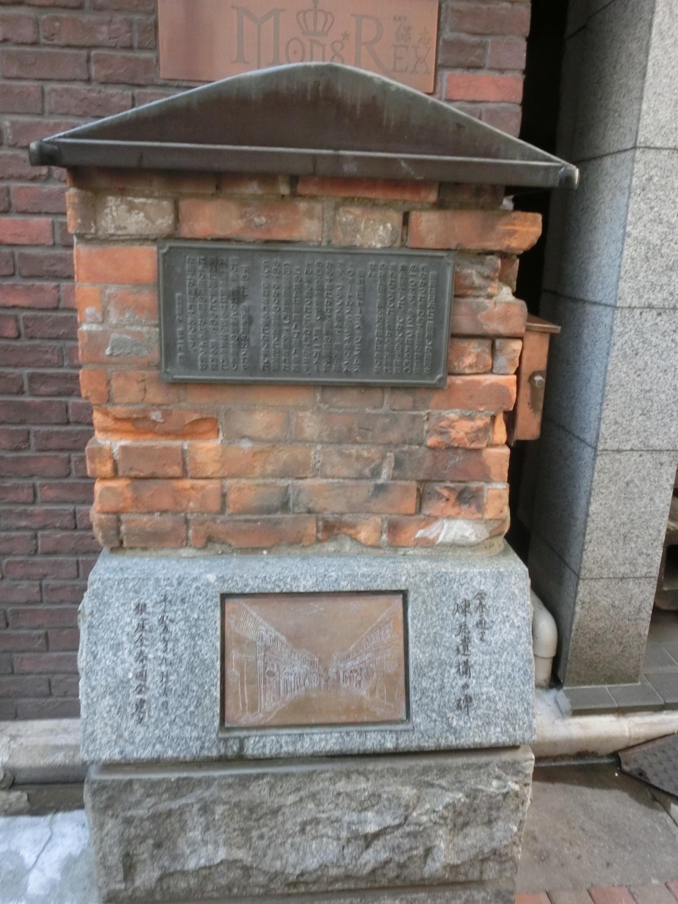 いまでは、名残すらないが、銀座八丁目八番地(旧金春屋敷地内)で、その一部の煉瓦が発掘されたのを機に、金春通りに記念碑として保存されることとなった。