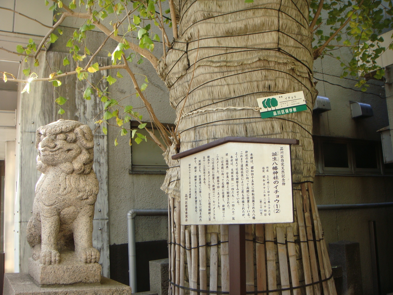 誕生八幡神社のイチョウは品川区指定天然記念物です