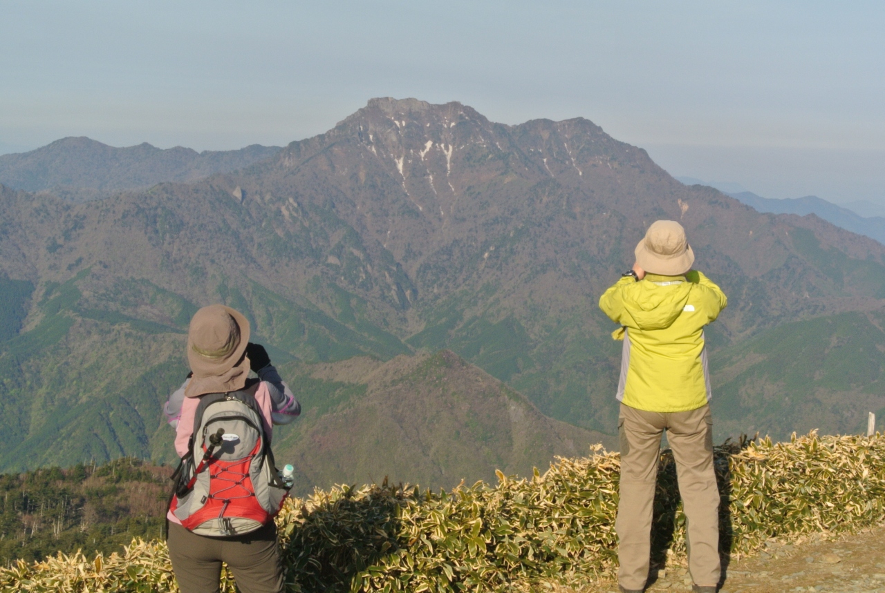 頂上からは、石鎚山。そして反対方向は、伊予富士へと続く美しい四国山脈の稜線。