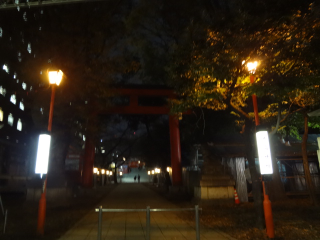 12月の初め、日が落ちてから、花園神社を訪ねました。初詣に備えてか、ところどころで、改修が行われていました。暗さの中に浮か上がる赤い社殿もきれいです。本殿の左側を回って、階段を下りていくと、交番が見えてきます。この辺りは、新宿ゴールデン街でそろそろ営業が始まるようでした。