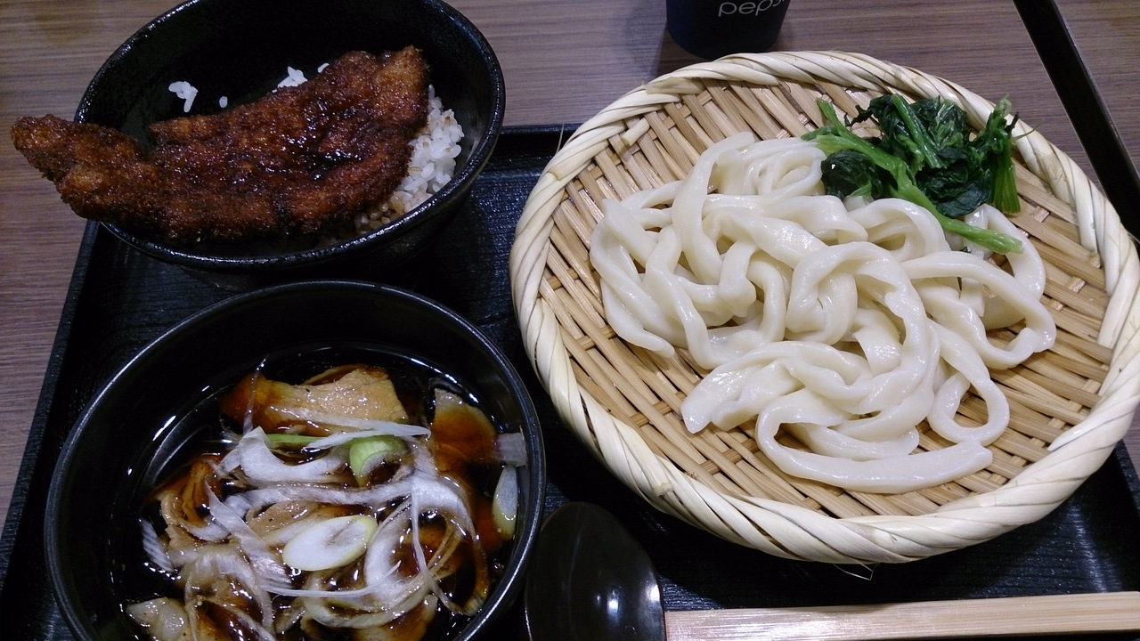 肉汁つけうどんとわらじカツ丼(小)を食べましたが、つけうどんはコシのある太麺に濃いめの味のつゆがとてもおいしかったです!