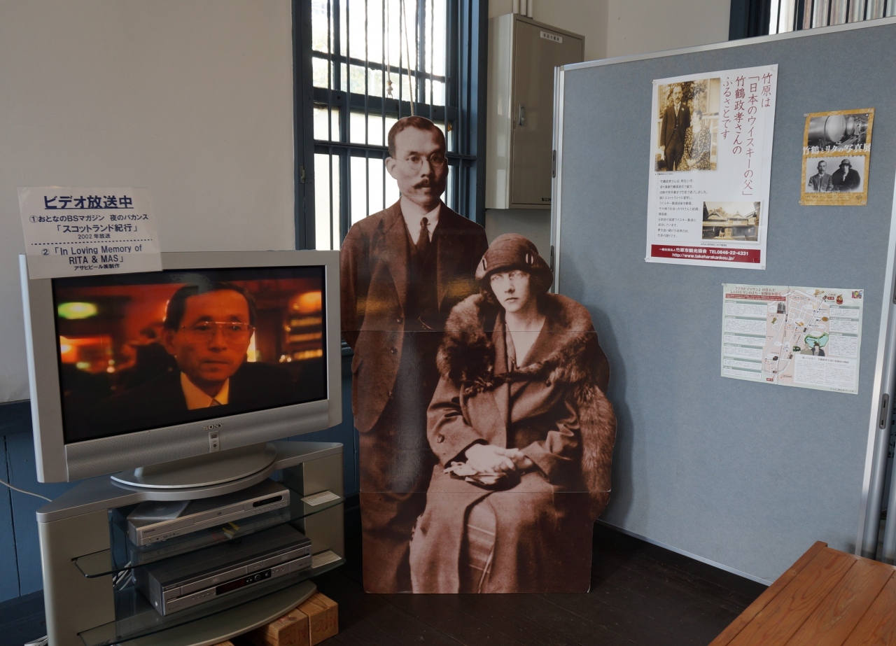 「マッサン」の竹原ロケのパネルや、政孝さんとリタさんの実際の映像も動画で流しています。