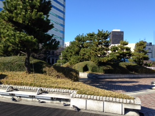 竹芝桟橋ビルの屋上に広がる緑の一角がこの広場。