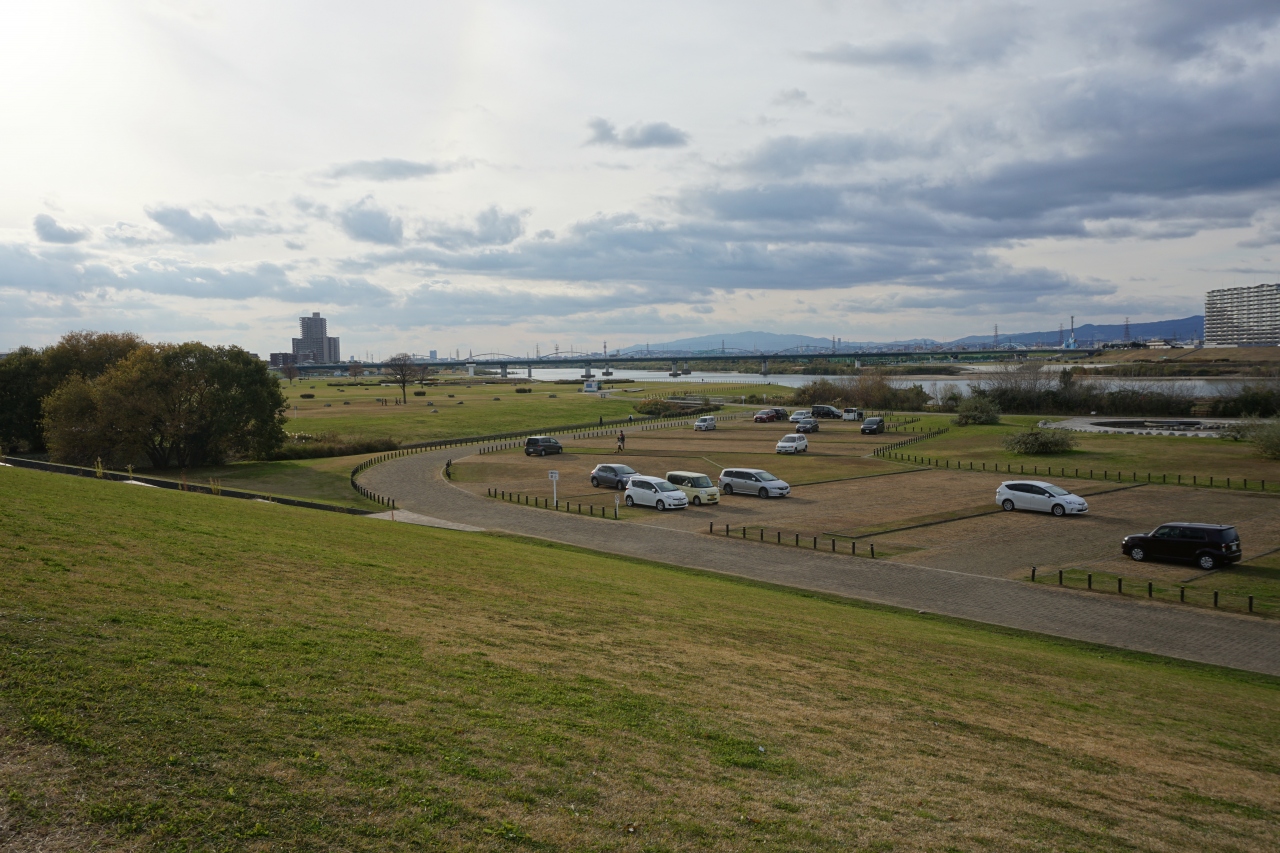 淀川河川公園の三矢地区は、枚方地区の下流にあたるエリア。こうした区分があることはあるのですが、形としてはつながっているし、利用者にとっては区分に意味はあるのかなあという感じ。淀川の管理事務所の方で意味があるのかもしれません。