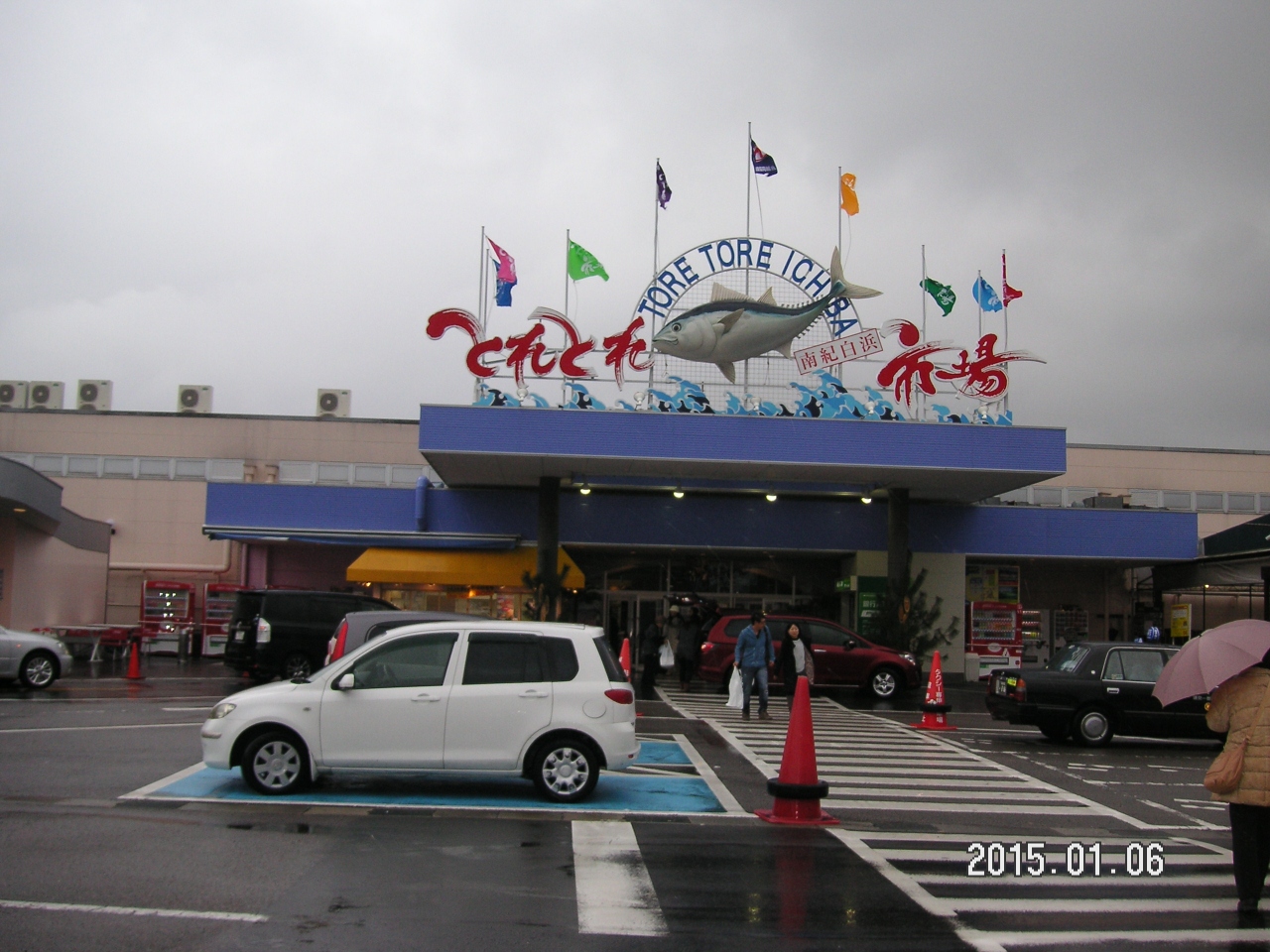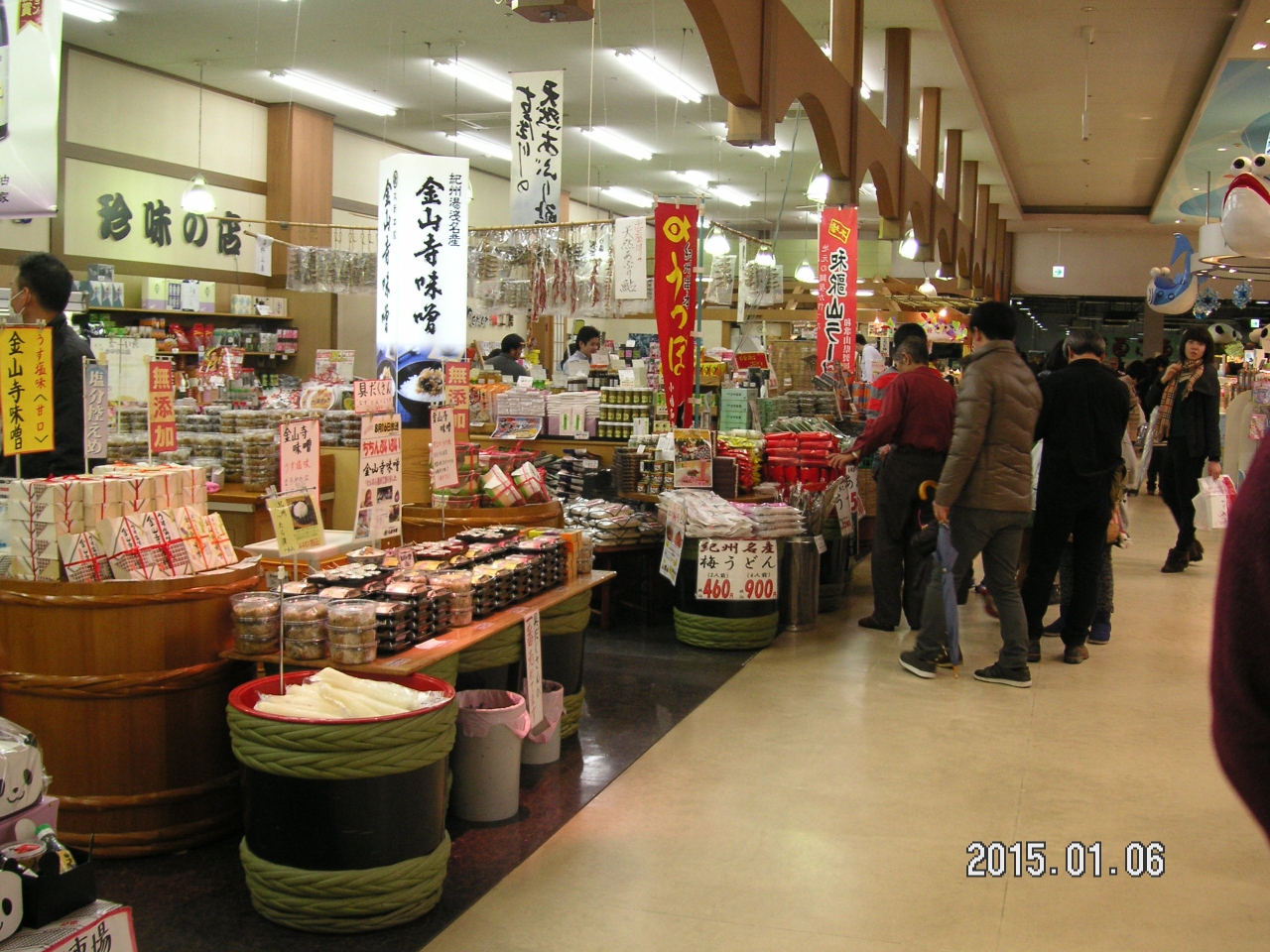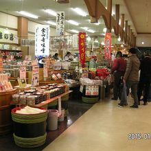 平日で冬場の風雨の強い中なのに多くの来場者で駐車場は満杯。店内はお昼時ということも有り、人人であふれ、お店も食事場所もにぎわっていた。みやげ物や新鮮鮮魚の展示即売どれも生き生きとして活気のある販売状況が見られた。