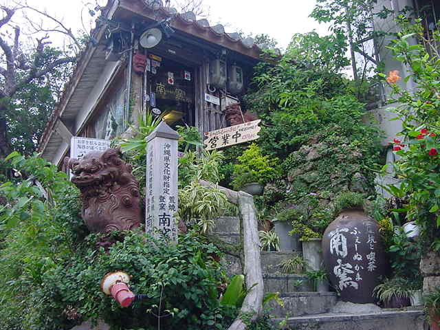 那覇市の国際通りに近いところにある「壺屋やちむん通り」。ここは「南窯」と書いて「ふぇーぬかま」。壺屋にただ一つ残った荒焼の登り窯だそうで、沖縄県指定の文化財になっています。喫茶店として営業していますが、コーヒーはポットサービス。チキンカレーなどの軽食もあります。