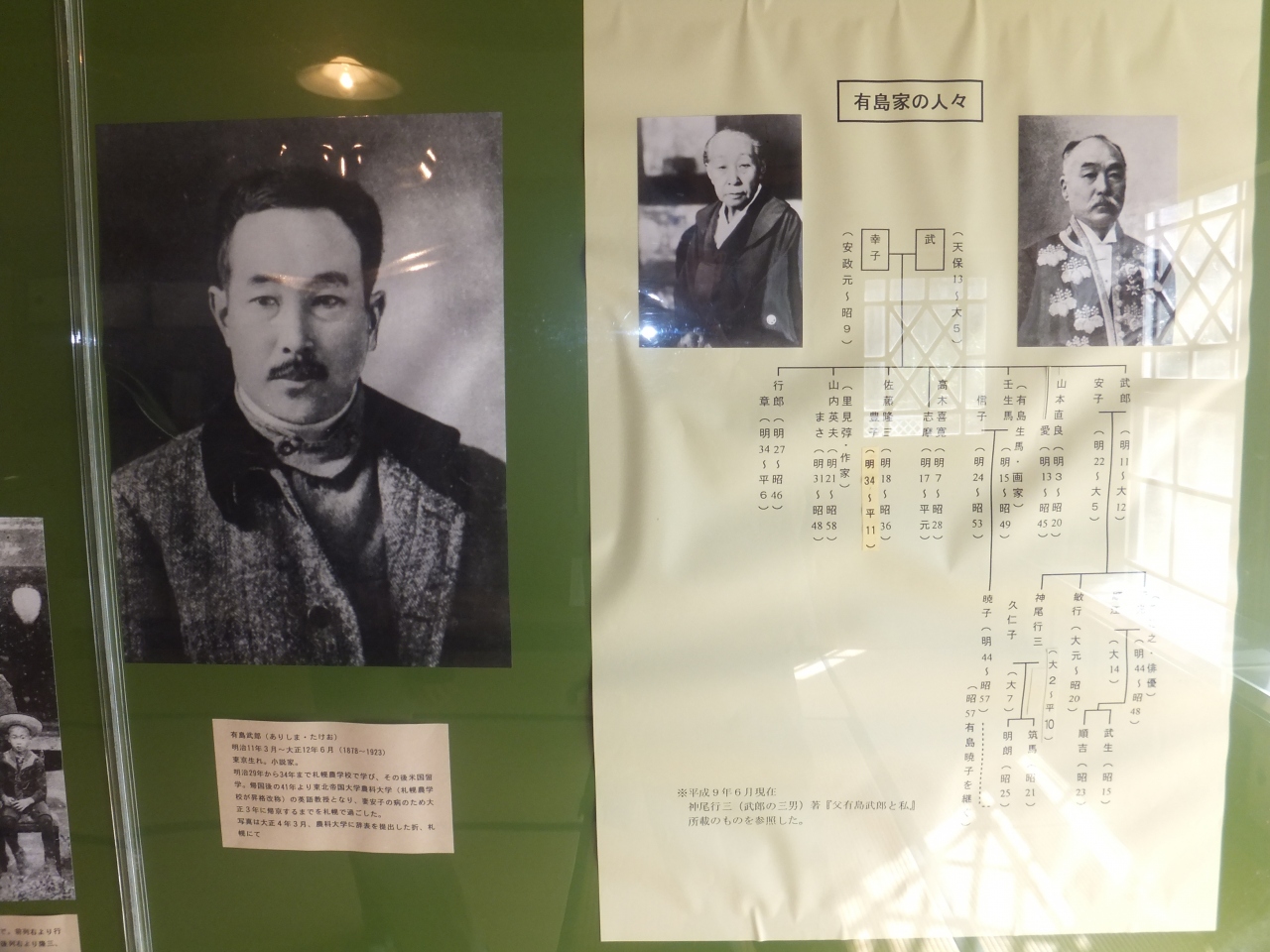 芸術の森そのものは広大で様々な記念館や施設があるが、特に気に入ったのは有島武郎旧邸。札幌にゆかりの深い文豪、有島武郎の大正2年に建てられた邸宅を当時の姿そのままに芸術の森に移築復元したもので、木造2階立てで10の部屋があった。有島武郎に関する様々な資料が展示され、建物内外がとてもきれいに手入れがなされ、家屋周辺の木々ともよくとけ込んでおり、とても見応えがあった。なお一時は、私が幼少期に過ごした地域の近くに有島武郎が居を構えていたことを知り、ビックリでした。