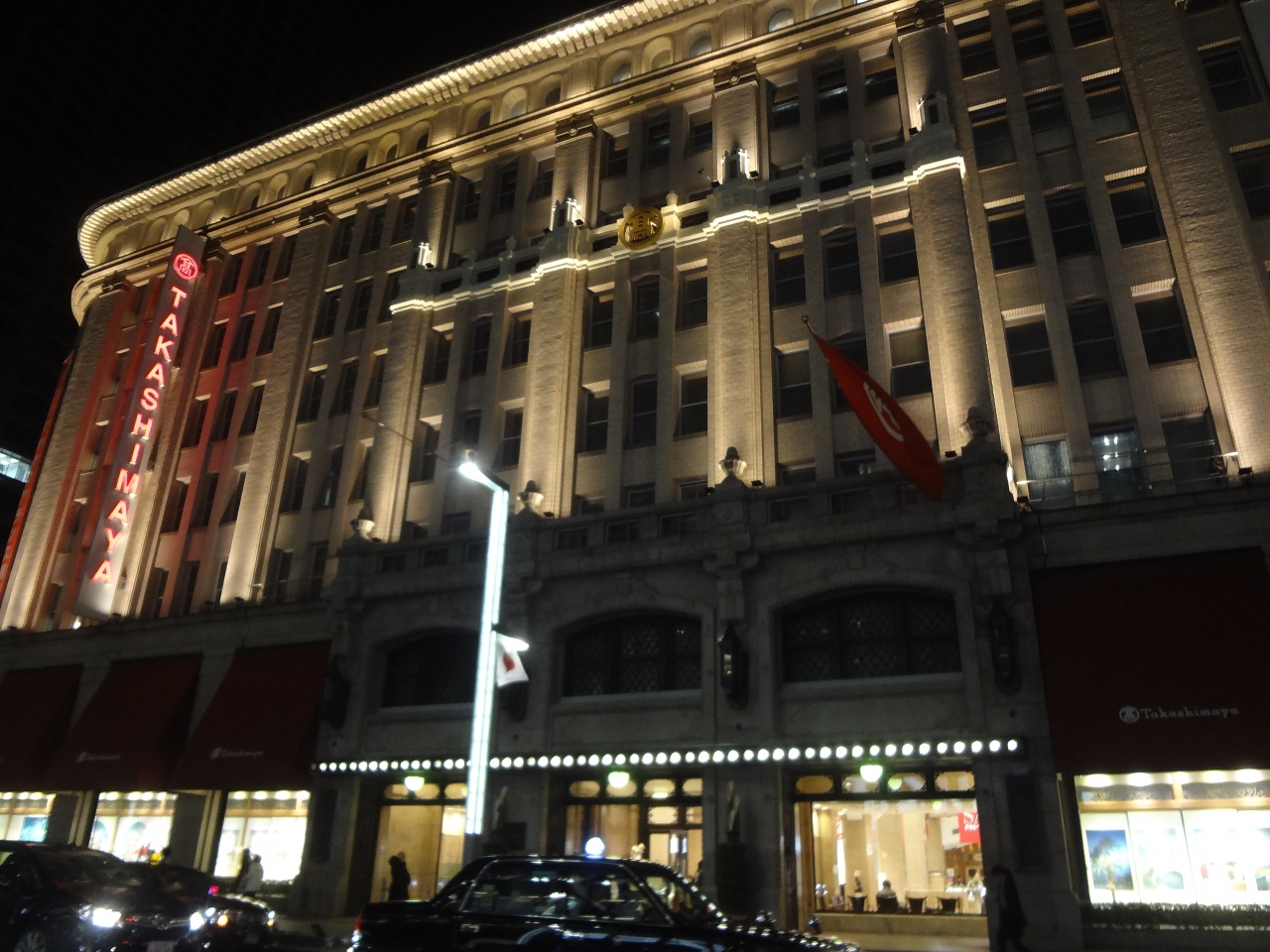 日本橋高島屋です。夜の時間でしたが、外観はやっぱり雰囲気がありますね。その外観はなんとなくパリの街並みにある建物のようでもあります。百貨店も含めて最近のビルや建物はどこか統一的で個性を感じません。こちらの日本橋高島屋のような凝った造りの建物はやはり重厚感があり、建物自体が作品のように感じます。ということで、日本でも有数な百貨店は建物としても見学する価値がると思うのでした。