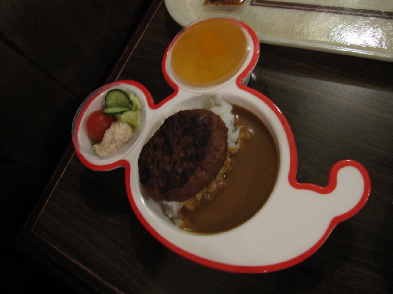 小学生の息子のカツカレーは甘口を選んだのですが、それでも普通の甘口よりも辛かったようです。子ども用のカレーはミッキーのプレートで出てきます。