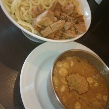 つけ麺は、魚介の味もしっかりと効いた魚介豚骨のスープで麺にしっかりと絡みます。