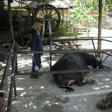 時間がゆっくり流れている感覚になりますね。時期にもよるのでしょうが、6月の平日だったのか結構空いていてゆっくりすごせました。水牛ものんびり寝ていました。