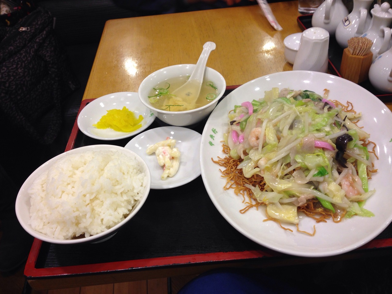 平日のお昼に訪問しました。難波ウォークにあり、立地もなんば駅直結で良いので繁盛しています。皿うどんと御飯、スープのセット980円を頂きました。味はまあ普通に美味しかったですが、この内容ではあと100円安いと良いと思いました。おばさんの愛想は良かったです。