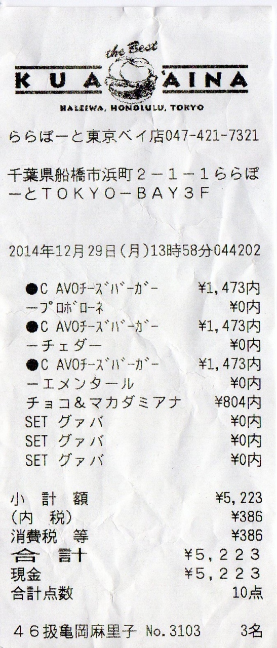 船橋のららぽーと東京ベイに行ったら、必ずKUA’AINAに行きます。