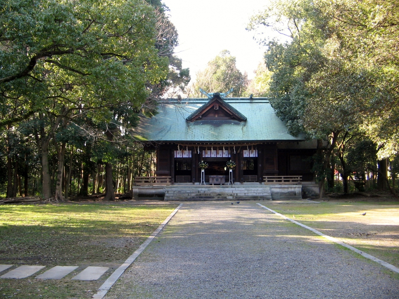 香川縣護國神社は善通寺市内の東部にあり、その神社の境内西側から乃木神社の敷地に向かう脇道案内があります。神社の森を通り抜けると乃木神社に着きます。