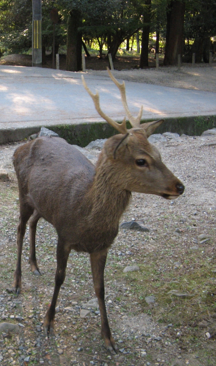 奈良公園で、シカを見てきました。とても人なつっこくて、かわいかったです。たくさんいて、初めは、こわかったですが、だんだん慣れてきました。えさをあげると、おいしそうに食べていました。毛並みがきれいでした。