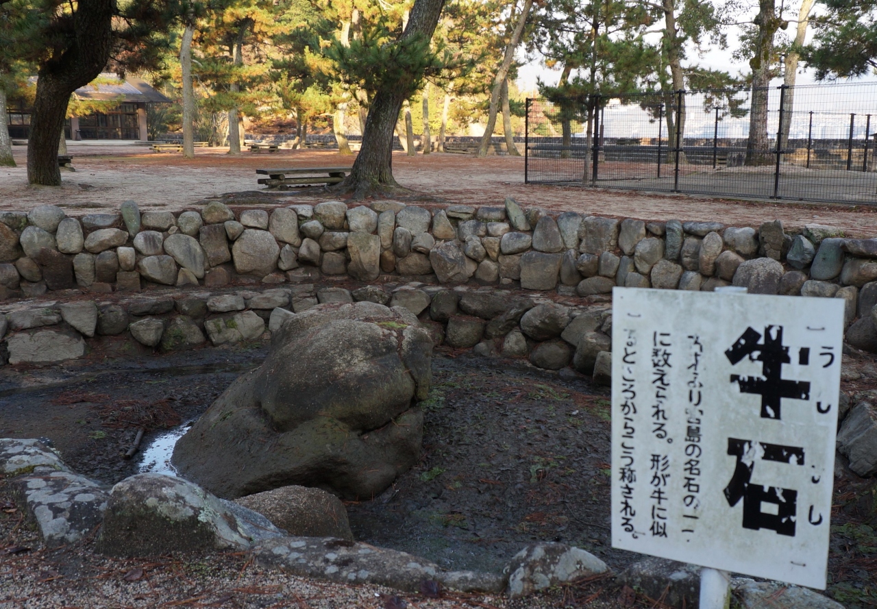 入り口付近にある「牛石」は宮島の名石の一つとあります。