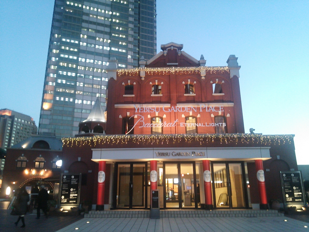 恵比寿駅から五分位。ちょっと歩きますが、動く歩道を利用すれば難なく行けます。駅を背にすると扇形に広がる広大なスペースにオフィス、ホテル、レストラン、美術館等様々な施設が建ち並びます。デートに、散歩に使える都会のオアシスです。この時期はイルミネーションが綺麗です。