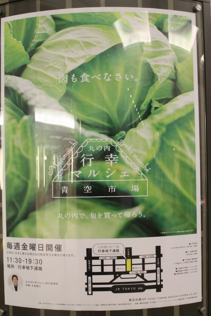新丸ビルから丸ビルに向かうときギャラリーの案内があったので行ってみましたが何も展示されていませんでした。常設展示はなく時たま企画展があるようです。毎週金曜日に丸の内行幸通りマルシェが開催されるようで、生産者が直接販売する市場のようです。