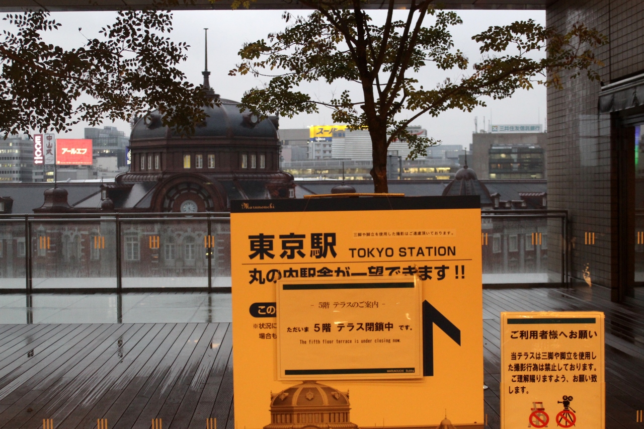久しぶりに東京駅に来たので丸ビルによってみました。5階のテラスから東京駅丸の内駅舎が良く見えるのですが、この日は雨が降っていたためかテラスは閉鎖されていました。kitteガーデンは開放されていたので残念です。
