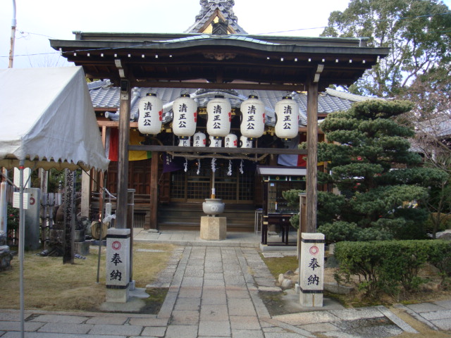 中村公園のすぐ隣にある日蓮宗のお寺で、豊臣秀吉の家臣「加藤清正公」の誕生之地とされています。まず山門を入ると右手に清正公の像があり、清正公誕生の地の碑の他、至る所に清正公の提灯があり加藤清正一色です。また毎月24日には清正公例祭、7月には清正公御正当大祭が行われます。境内には梅の木が多く、咲き始めた樹もありましたが、見頃は2月でしょう。