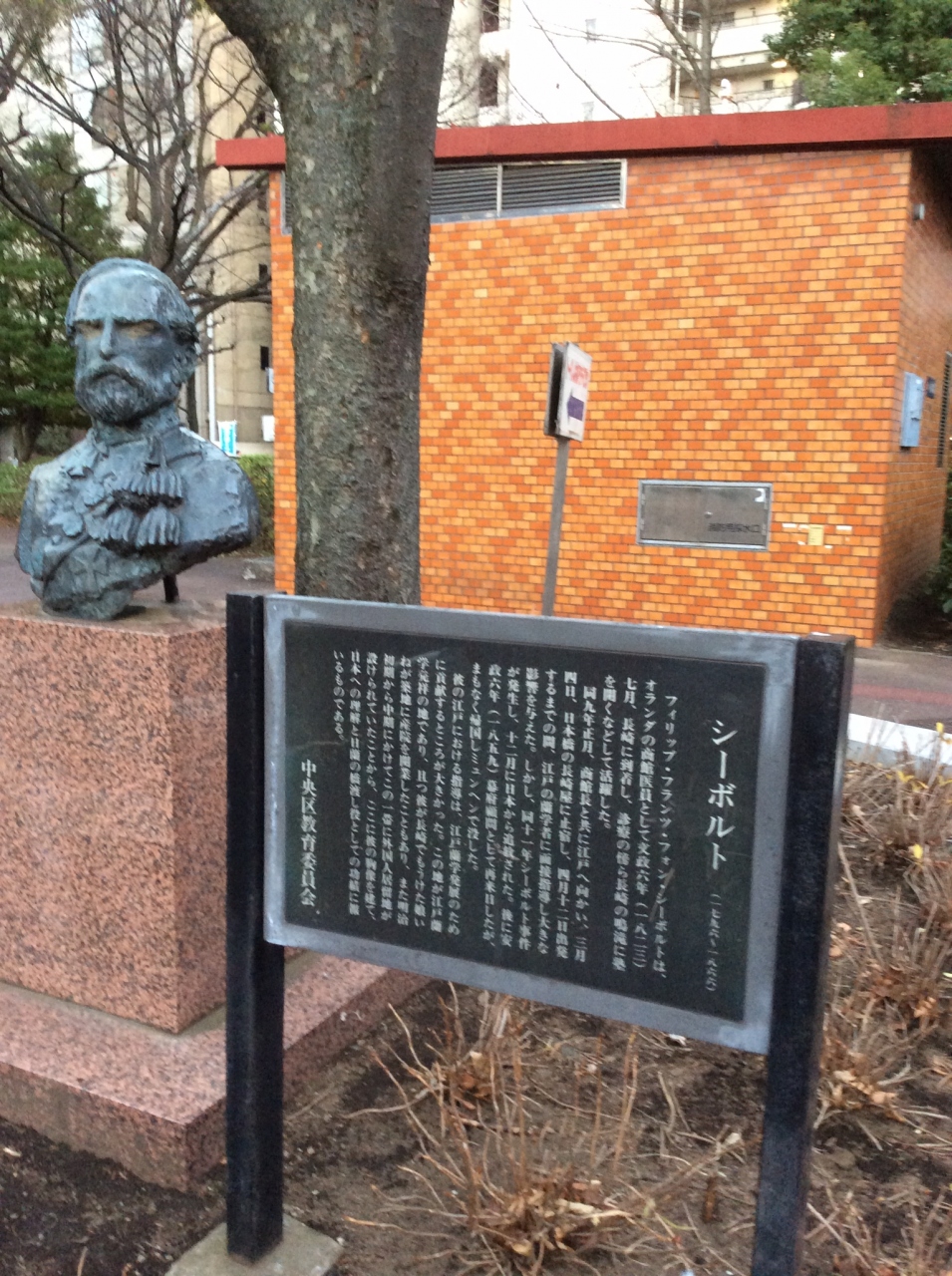 あかつき公園内の広場の所にあります。オランダの商館医として来日し、長崎に診療所と医学教室を兼ね備えた鳴滝塾を開き日本人に西洋医学を教え貢献した人物です。娘のイネが東京は築地に開業した縁でここに銅像があるのでしょうか。