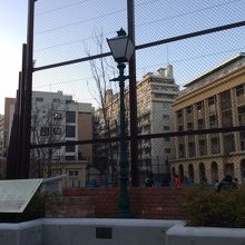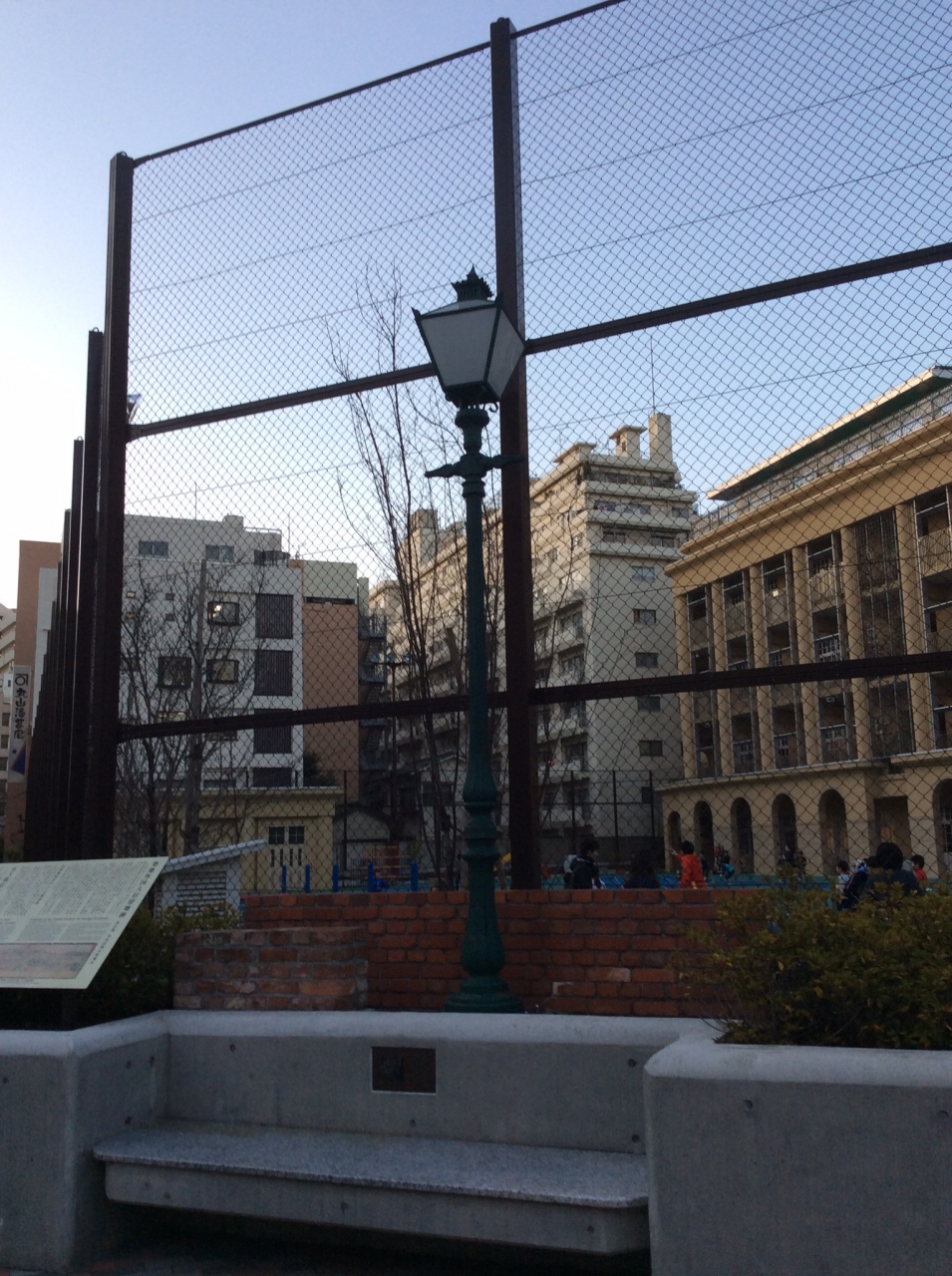 明石小学校の角の所にあります。明治初期には夕方になると点火手が長い棒の先に鍵と点火具をつけて、ランプの底を開いて点火して周っていたようです。ちなみに今も夕暮れ近くなると点灯しますので見物は暗くなってからのほうがいいかも。