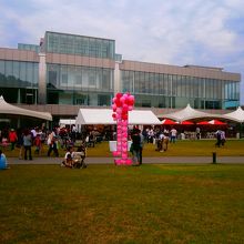 金沢市の観光の要に囲まれたところにあります。周りには21美、金沢城、兼六園、中央公園など。裏側はガラス張りになっており開放感満点。最近は裏側の芝生広場を利用していろんなかわいいイベントが開催されています。