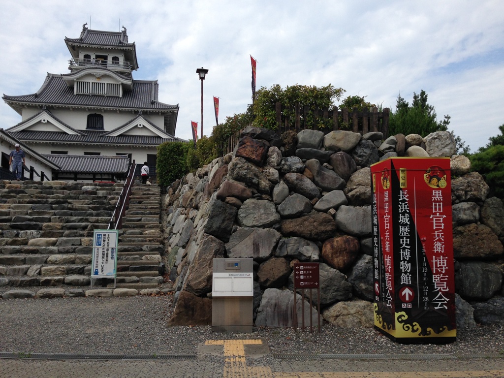 長浜駅の近くにある景観のきれいな豊公園があります。広い園内には羽柴秀吉(豊臣秀吉)が築城した長浜城があります。入館料は有料(400円)です。館内は5層建てで展示室は主に2階・3階で、最上階が展望台になっています。常設展示や期間限定の展示などがありました。長浜の歴史や文化など地域で守り抜いてきたものなどの資料が展示されていて引き付けられるものがあってなかなか楽しかったです。また天守閣最上階から眺める美しい景観はお天気に恵まれ伊吹山や竹生島などが見ることができました