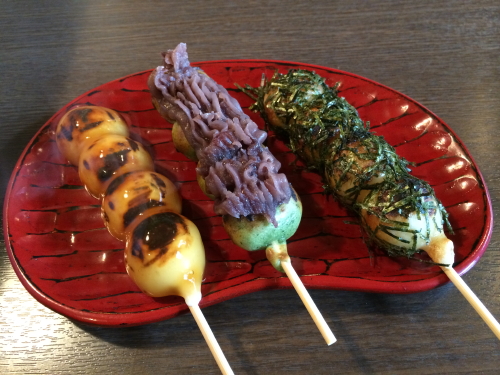 おだんごの種類は10種類位あり、好きなのを選んでから焼いてくれますから、焼きたてほかほかです。