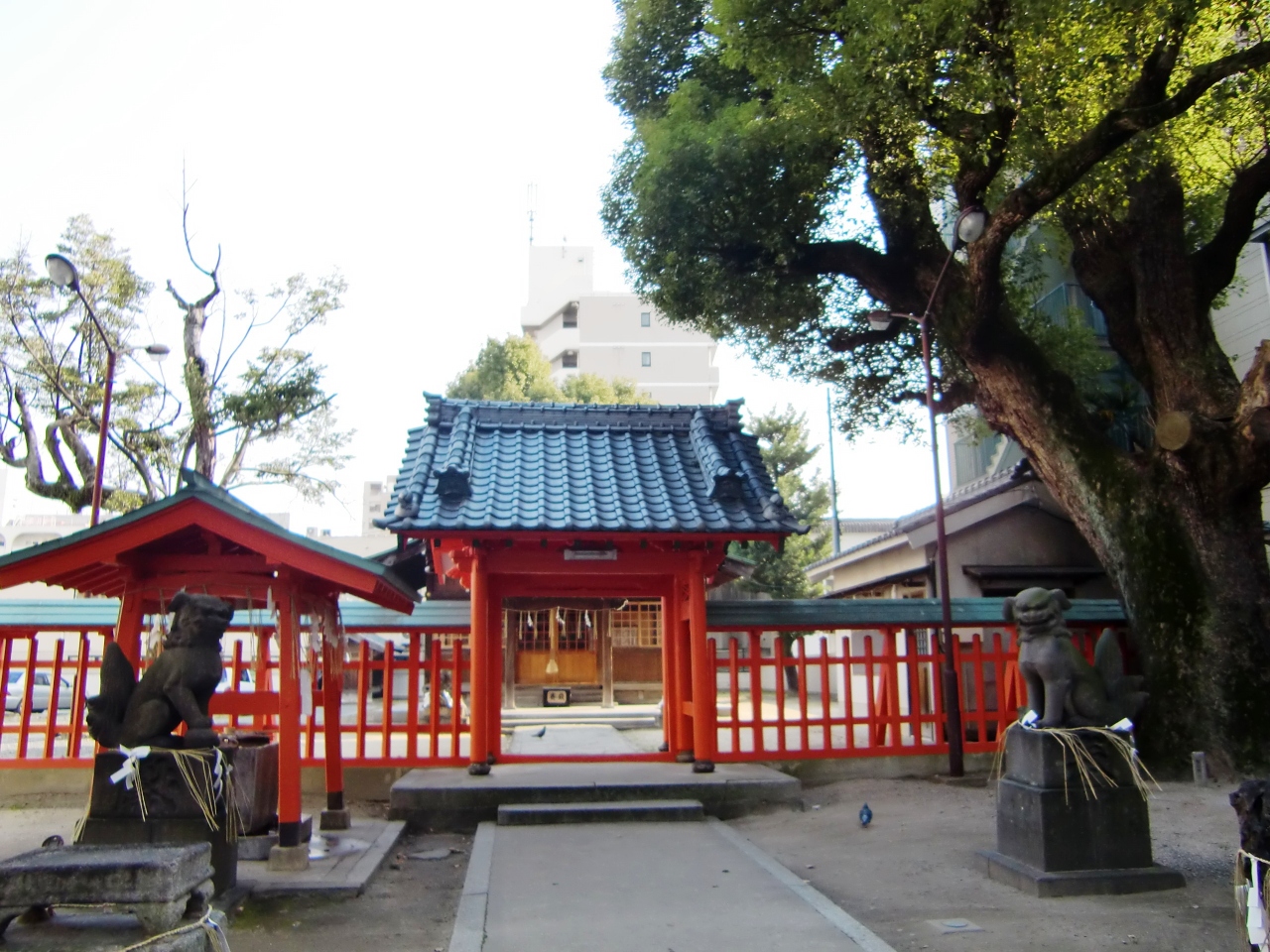 雑居ビルや住宅に囲まれていて、商業地の天神に近いですが、境内は厳かな静けさに包まれています。