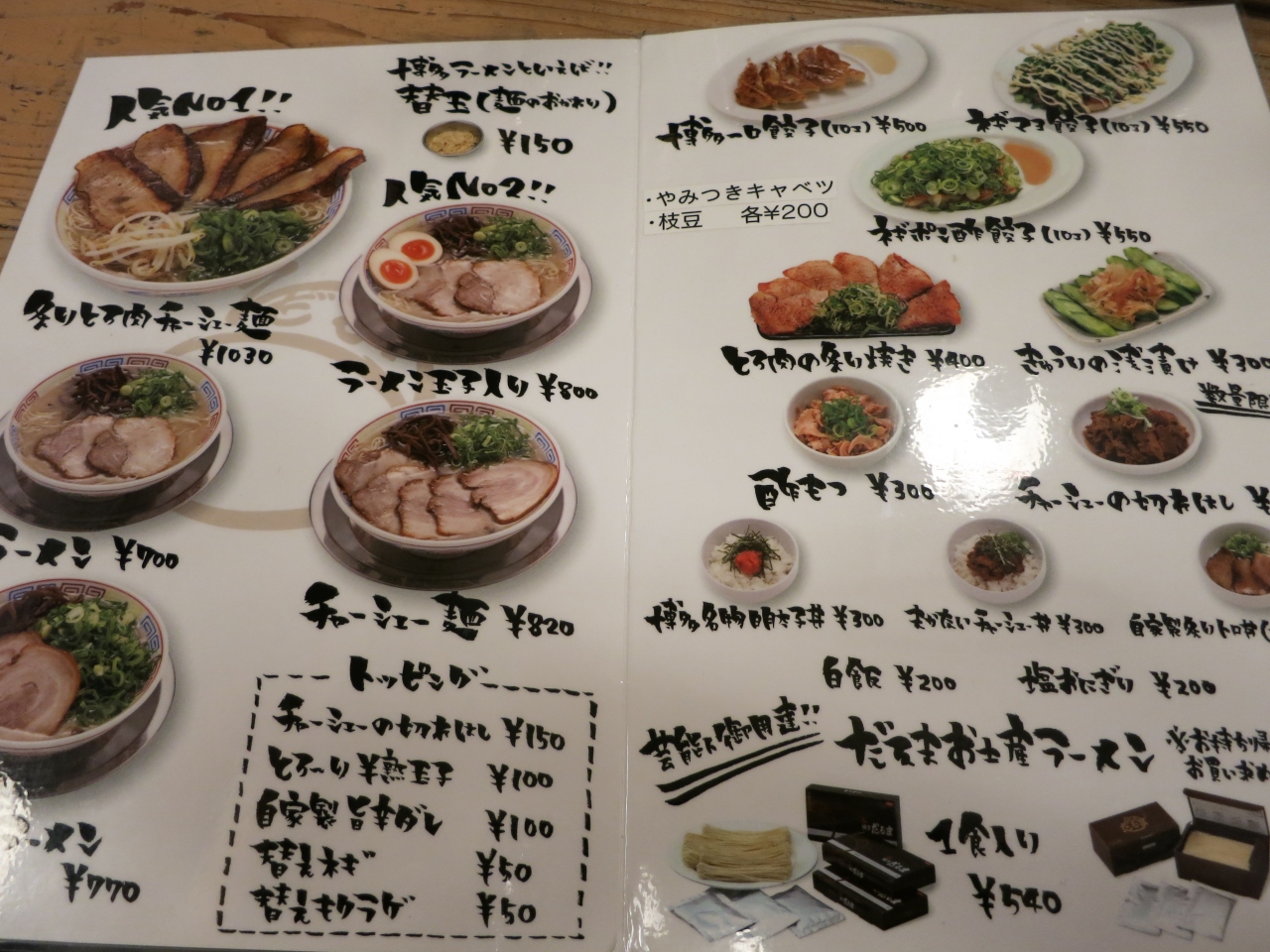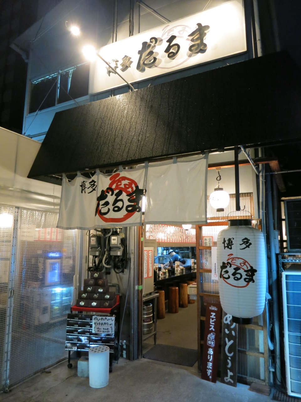 福岡旅行の第1日目の夕飯は、博多に行ったら絶対2回は食べようと思っていた博多豚骨ラーメンをこの店にしました。車で行ったのですが、お店の左横にはコインパーキングがあり、駐車は困りませんでした。