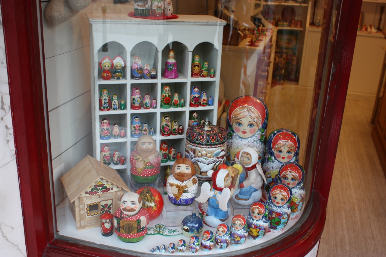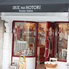 こじんまりとしたお店です。ショーウインドウにマトリョーシカなどが並べられていてかわいいです。