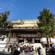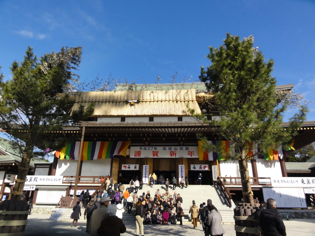 7日は新勝寺の行事として七草御印紋がありました。本殿の護摩焚き終了後の案内にもありましたが、1月7日の七草の日にお不動 さまを表す梵字が刻まれた朱印を参詣者の額に押し、無病息災・身体健全を祈念するというのです。押してもらう時は、引かずに額を突き出すようにすると梵字がくっきりしっかり残ると後になって教わりました。ピンポン玉位の大きさです。道行く人の額に朱印があった訳がわかりました。今まで気にも留めてなかったのですが、本殿前には立派な注連飾りもありました。