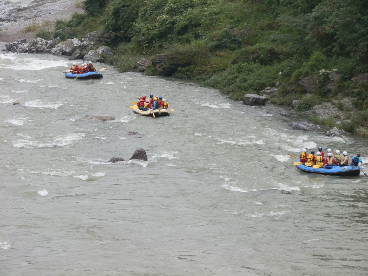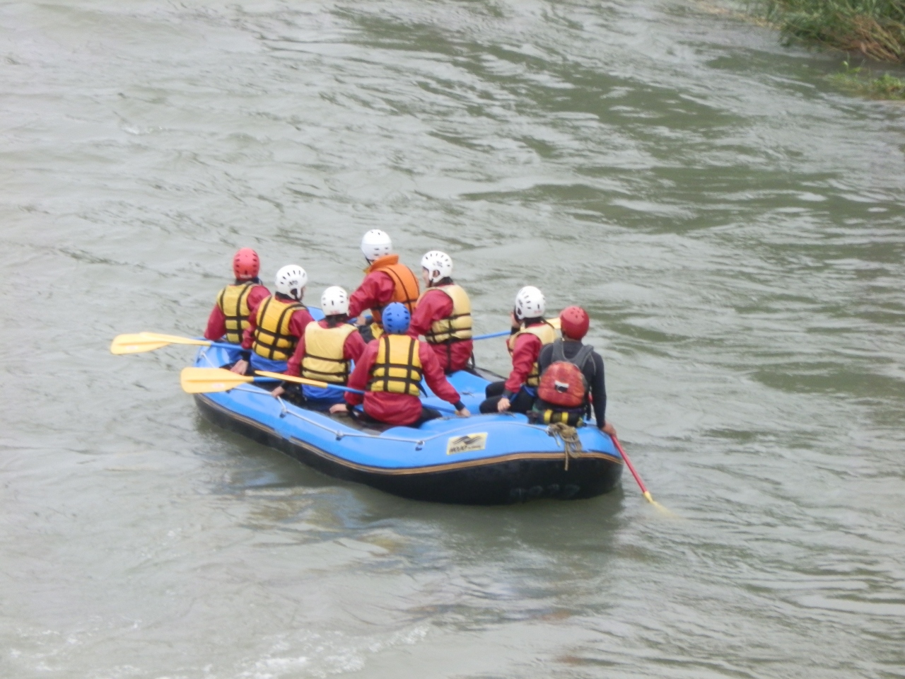 ある鉄道会社の「健康ハイキング」に参加した。今回は「長瀞七草寺観賞ハイキング」である。真正寺から「法善寺」まで約1.1? 徒歩約20分である。途中、荒川を渡る。金石水管橋の上からラフティングで荒川の急流を下る姿が見えた。眼下に長瀞オートキャンプ場があり、高校生くらい集団がいて、グループに分かれ乗船していた。