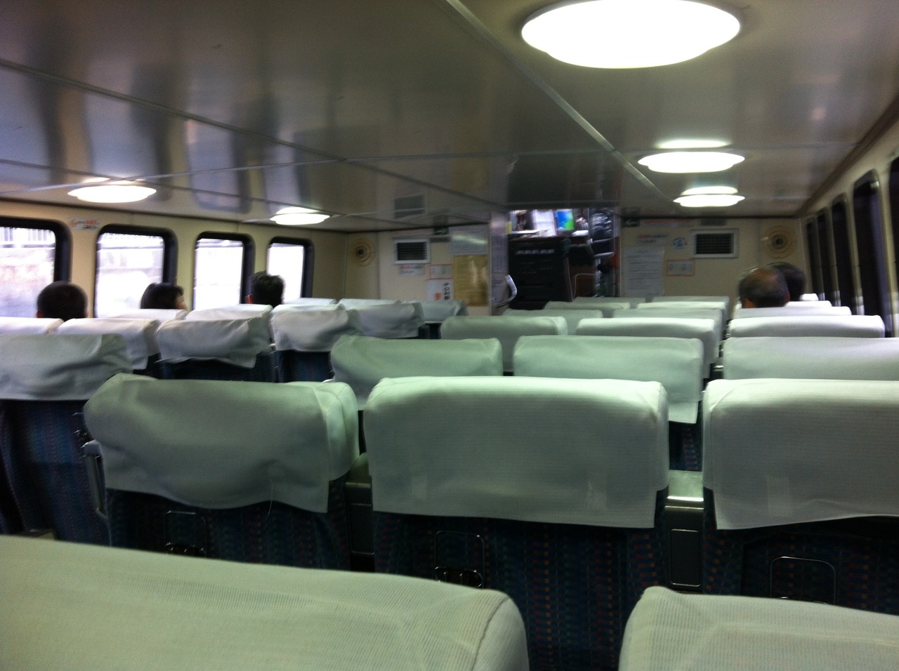 石垣港から離島行きのフェリーです。小浜島や竹富島や大原港など近距離は問題ありませんが、30分を超える路線はめちゃくちゃ揺れてグロッキーな人が続出なんで注意してください。店内の説明に書いてありますが、後方シートが比較的揺れないです。