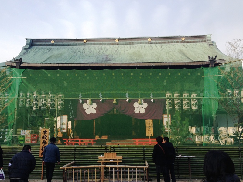 受験シーズンには合格祈願に訪れる人も多いですね。年末に行ったので初詣準備で本殿にはネットが掛けられていた・・・。