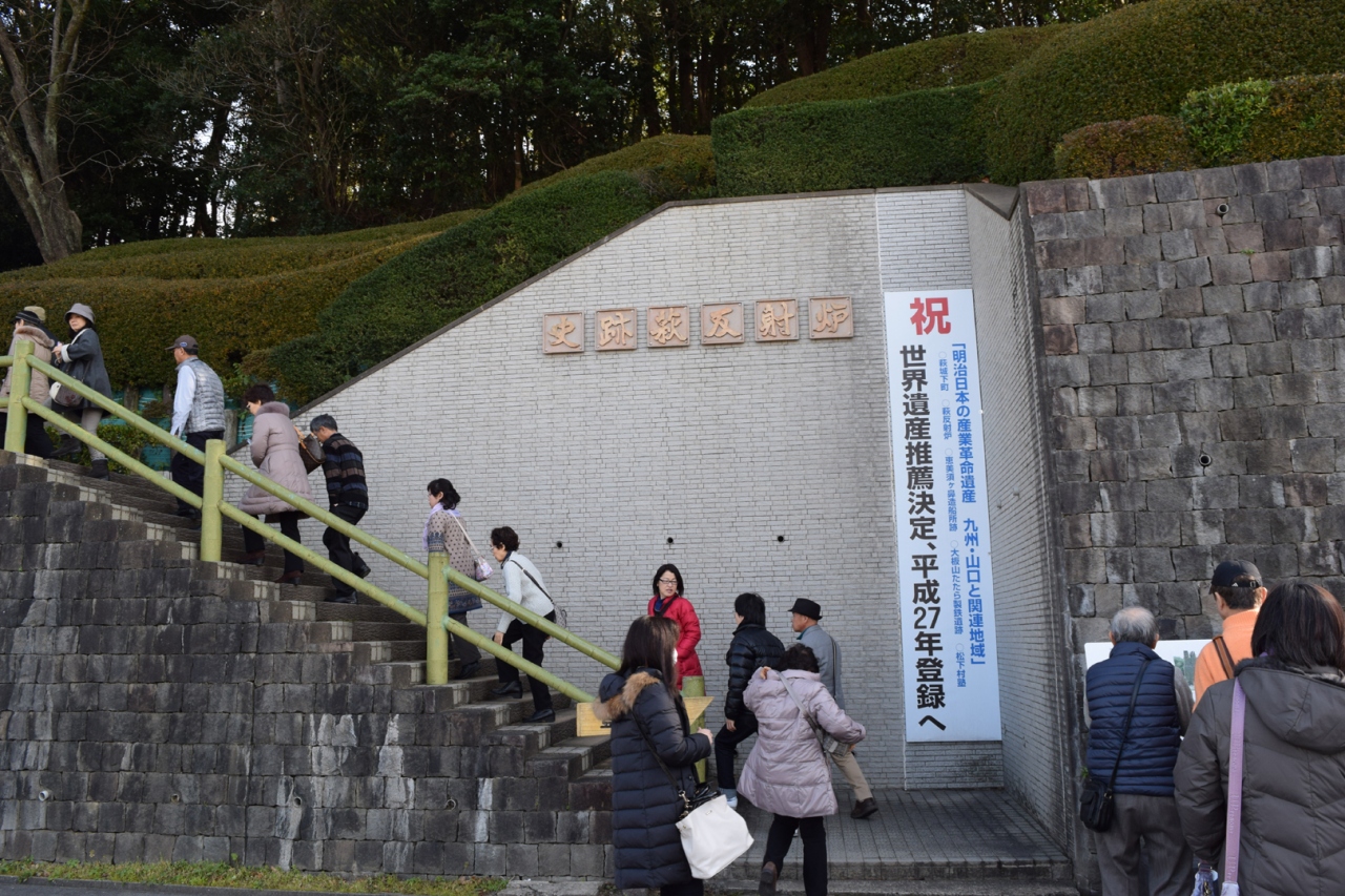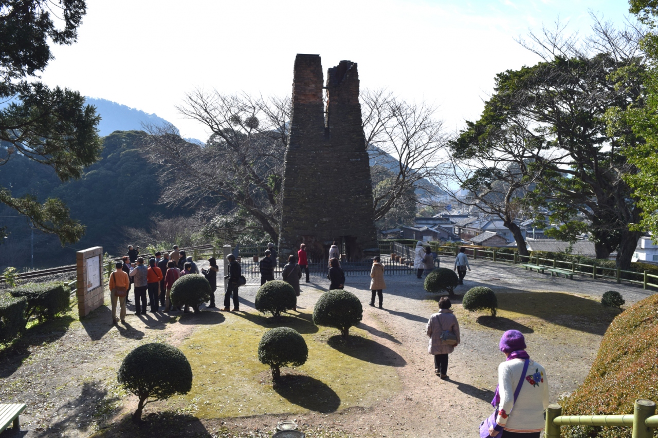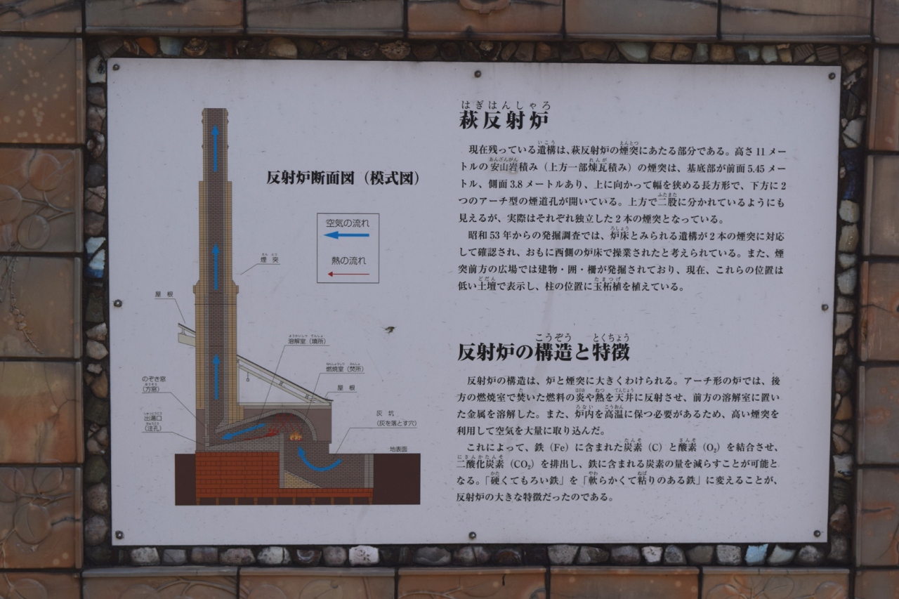 明治の産業革命遺産として世界遺産の候補になるようです。セブンイレブンの駐車場と同居している駐車場から階段で丘に上がると煉瓦作りの煙突が全景をあらわします。説明の掲示は数枚あり、構造図も示されていますから現物との対比で全体の構造が理解できます。