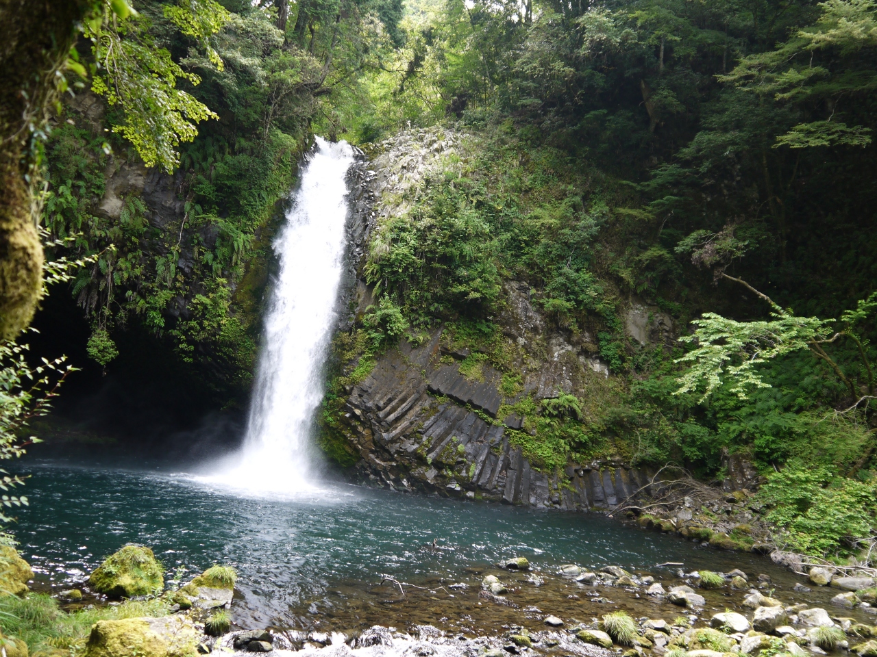 天城越えの歌で有名な浄蓮の滝に車で行きました。犬3匹と6人で行きましたが、老犬の一匹は階段を降りる途中でへばったのでだっこしておりました。とにかく、階段がたくさんあり、きついです。