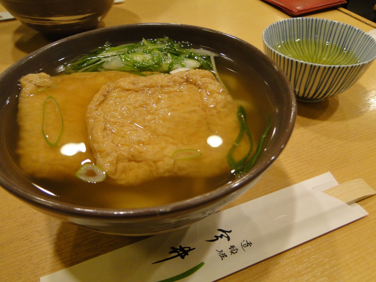 澄んだ汁は関東のそれとは違った味わい、出汁が効いていてとてもおいしいです。おあげはしっかりしたもので、甘味がありじゅわ~っと染み出してくるのがおいしい。