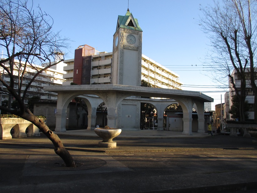 「滑り台」や「お山」といった子供用の遊具はあるものの、水の出ていない「噴水」、妙に洒落た「時計台」といった存在が「カルト感」を増しています。