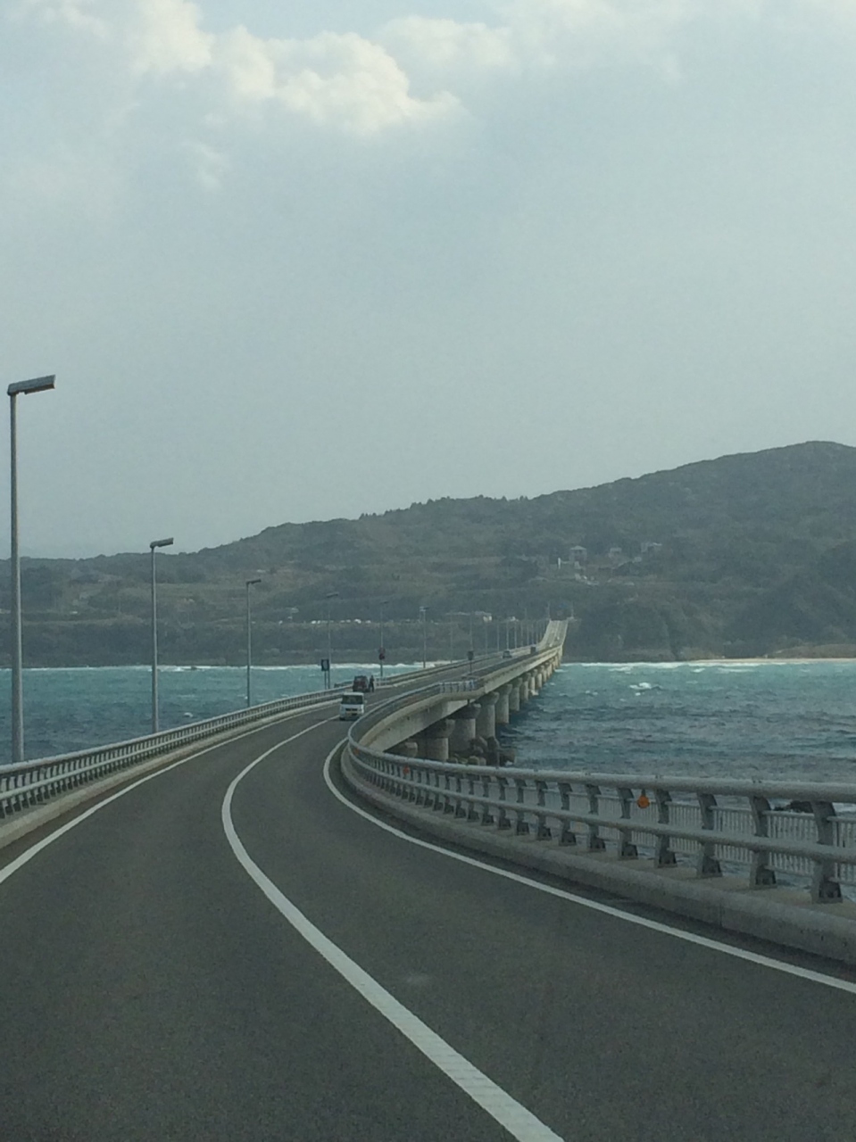 長くまっすぐな道が島まで続いています。