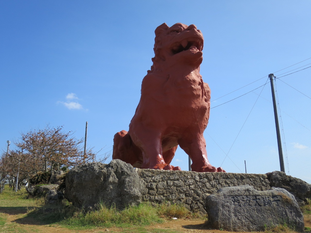岬の近くに日本一大きいシーサーがあったので記念撮影しました。
