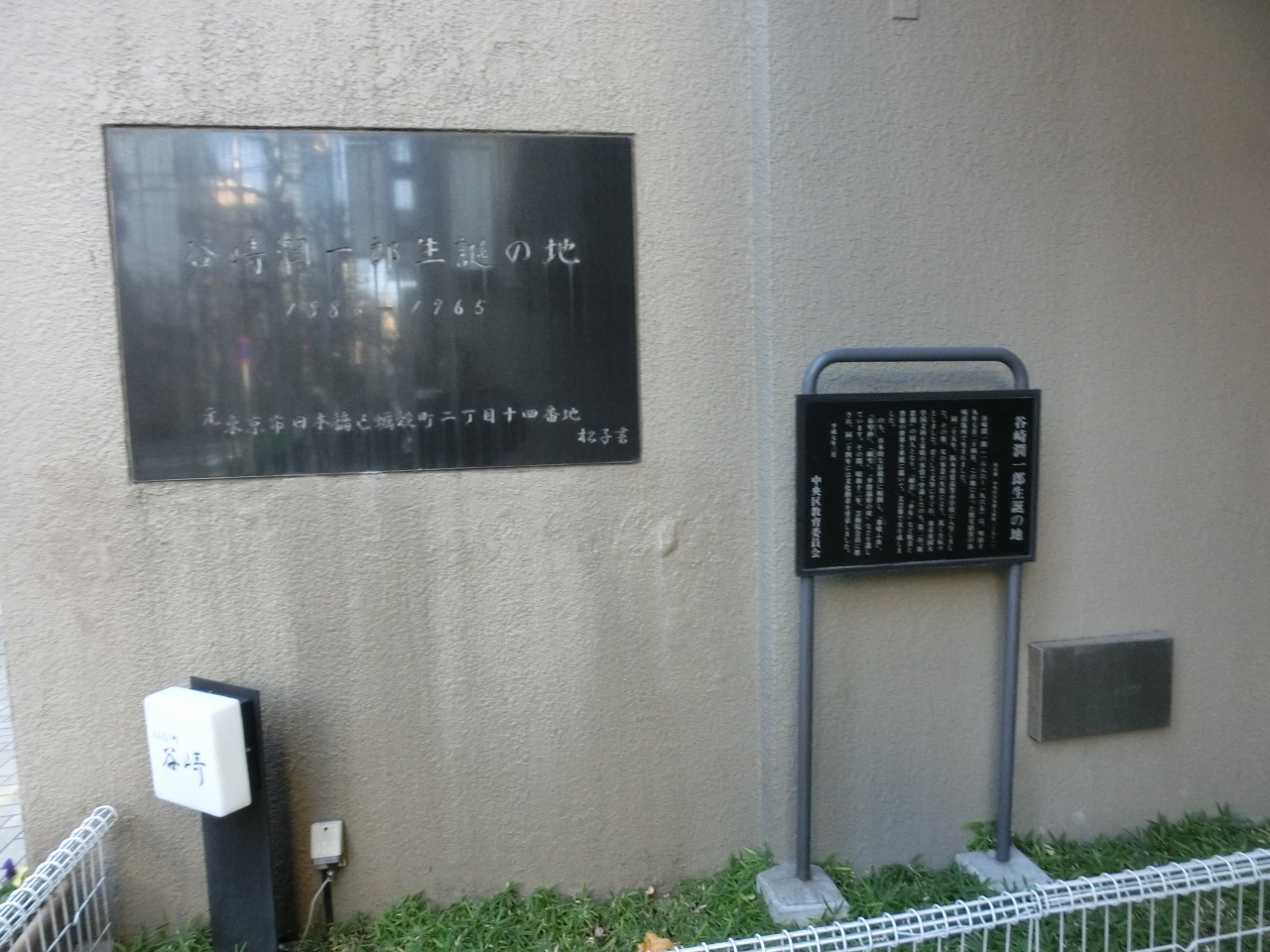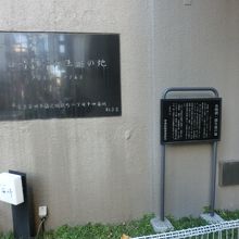 甘酒横丁を人形町通りとの交差点を南に下ったビルの壁に碑文が飾られている。