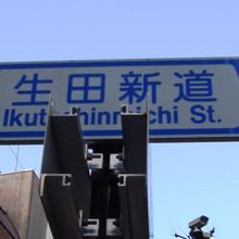三宮駅近くの三本の鉄道と平行に走るような道である。生田神社の社殿は南に面して建てられているため、表参道とすべきは南北に走る道であり、この道は東西に走っており、どのような経緯で生田の名がついたのかはわからなかった。いずれにしても神戸の中心部の重要な道である。