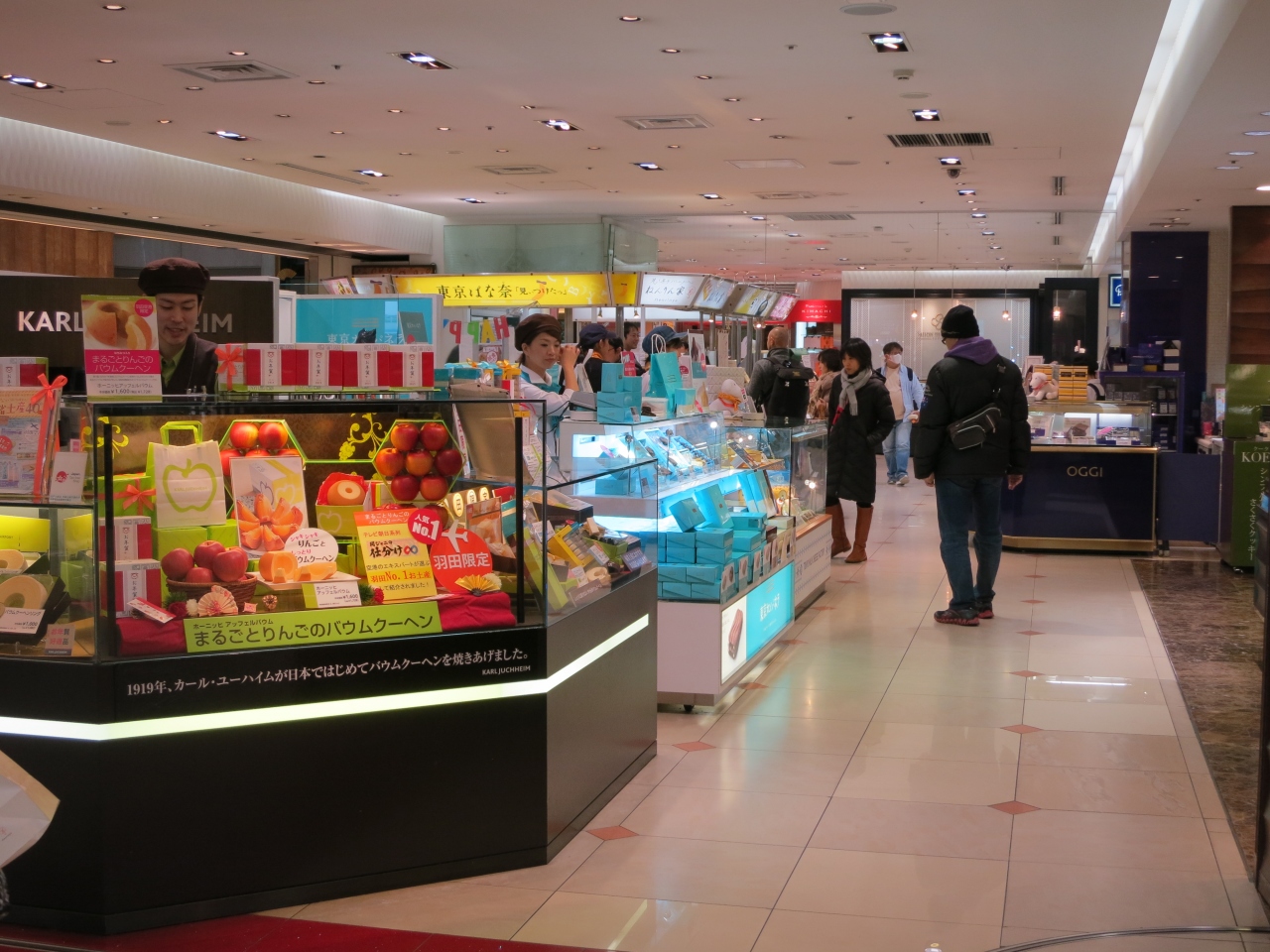 第1旅客ターミナル2階中央付近、CゲートとEゲートの間にある人気洋菓子店が揃ったエリアです。キース・マンハッタンやカール・ユーハイム、東京ばな奈、パステル、KIHACHI、OGGI、ヨックモックなどが揃い、見ているだけでも楽しいエリアで、時間があるときはいつも寄ってお買い物します。新商品や空港限定の商品もあり、きっと満足なお土産に巡り会えると思います。