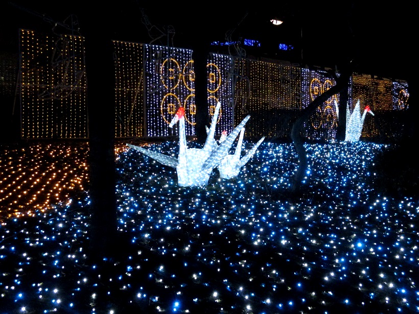 会場内には、光の陣幕、光の折り鶴、光の桜などが配置され、また「大坂の陣400年」ということで、光の真田幸村もお目見えしています。