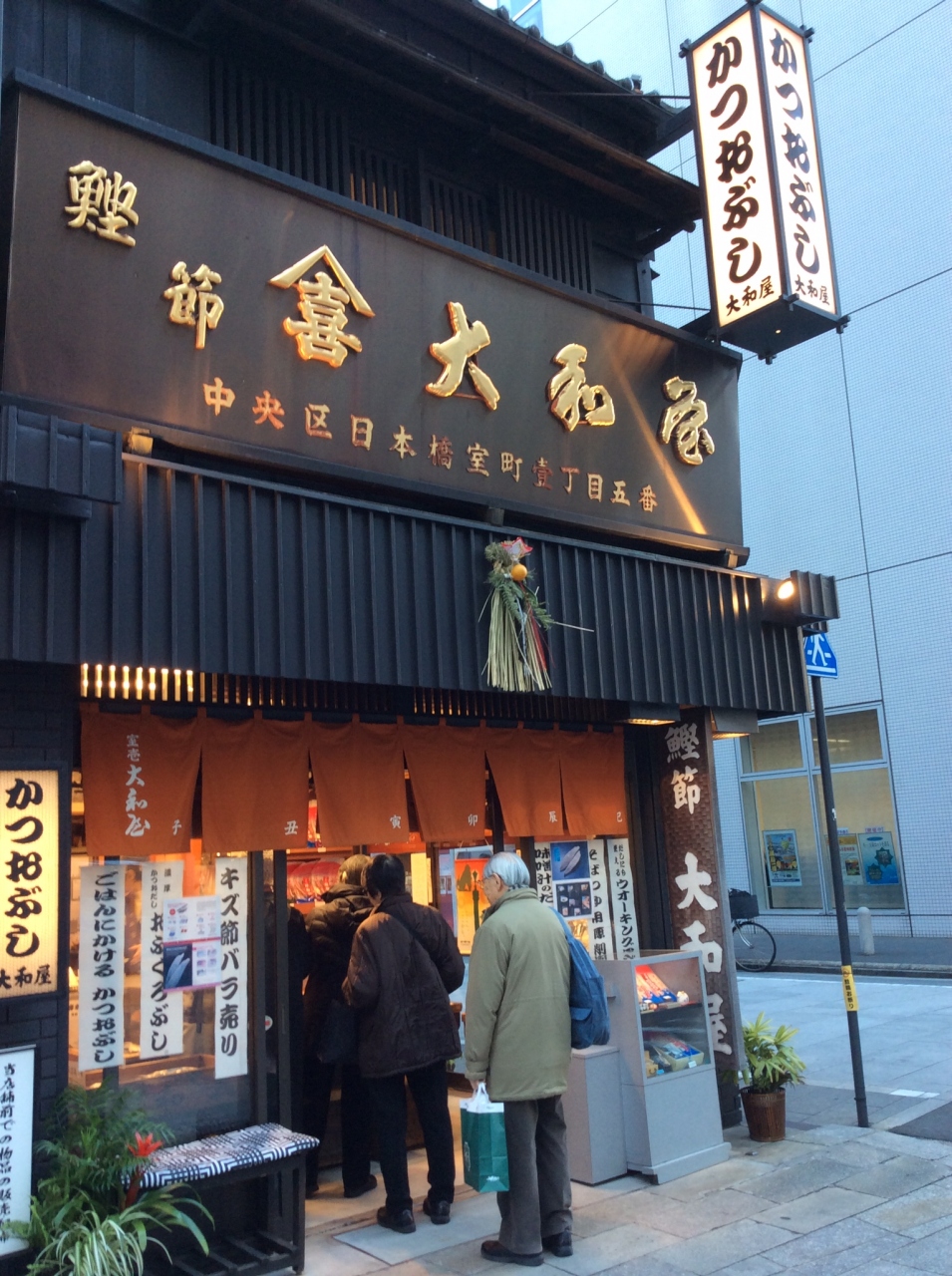 日本橋三越本店の向かい側にあります。鰹節の専門店で色々な種類の鰹節を販売しています。ごはんにかけるかつおぶしという商品がテレビでも紹介されたこともある人気商品のようです。自分で削って食べたい人のために小型カンナのカンナ太郎というものも販売しています。