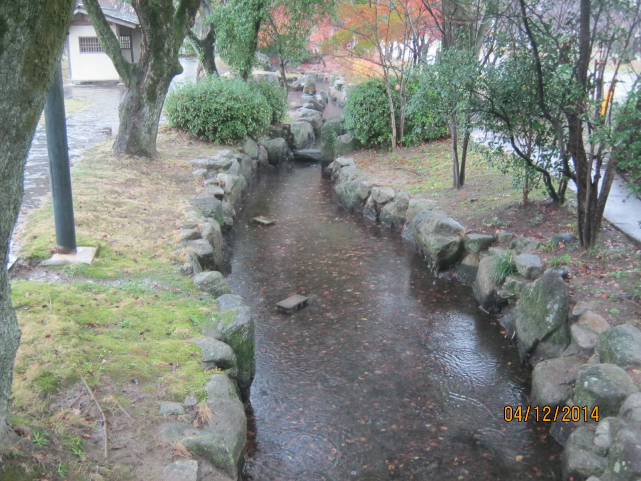 三柱神社の大鳥居から本殿に向かう参道の左手にあります。公園ですが野原のようなところです。しかし公園と神社の参道との間に小川が流れているのです。きれいな水が流れていてそれが安らぎをもたらしてくれます。ゆったりと見とれていたいような小川でした。